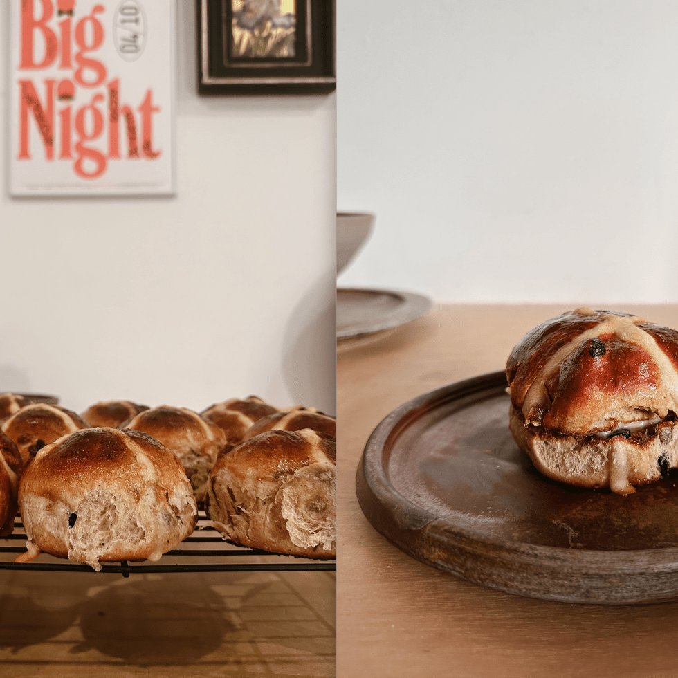 Soft and fluffy hot cross buns (the Tangzhong method).