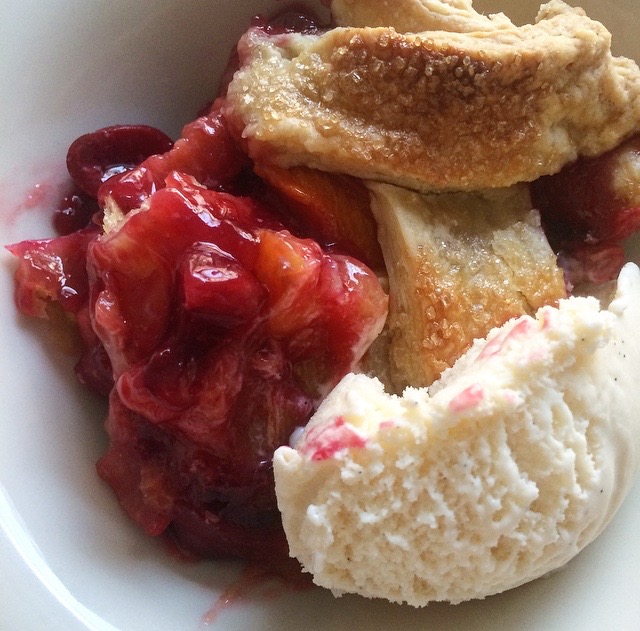 An adapted amalgamation of this New York Times peach-and-cherry pie