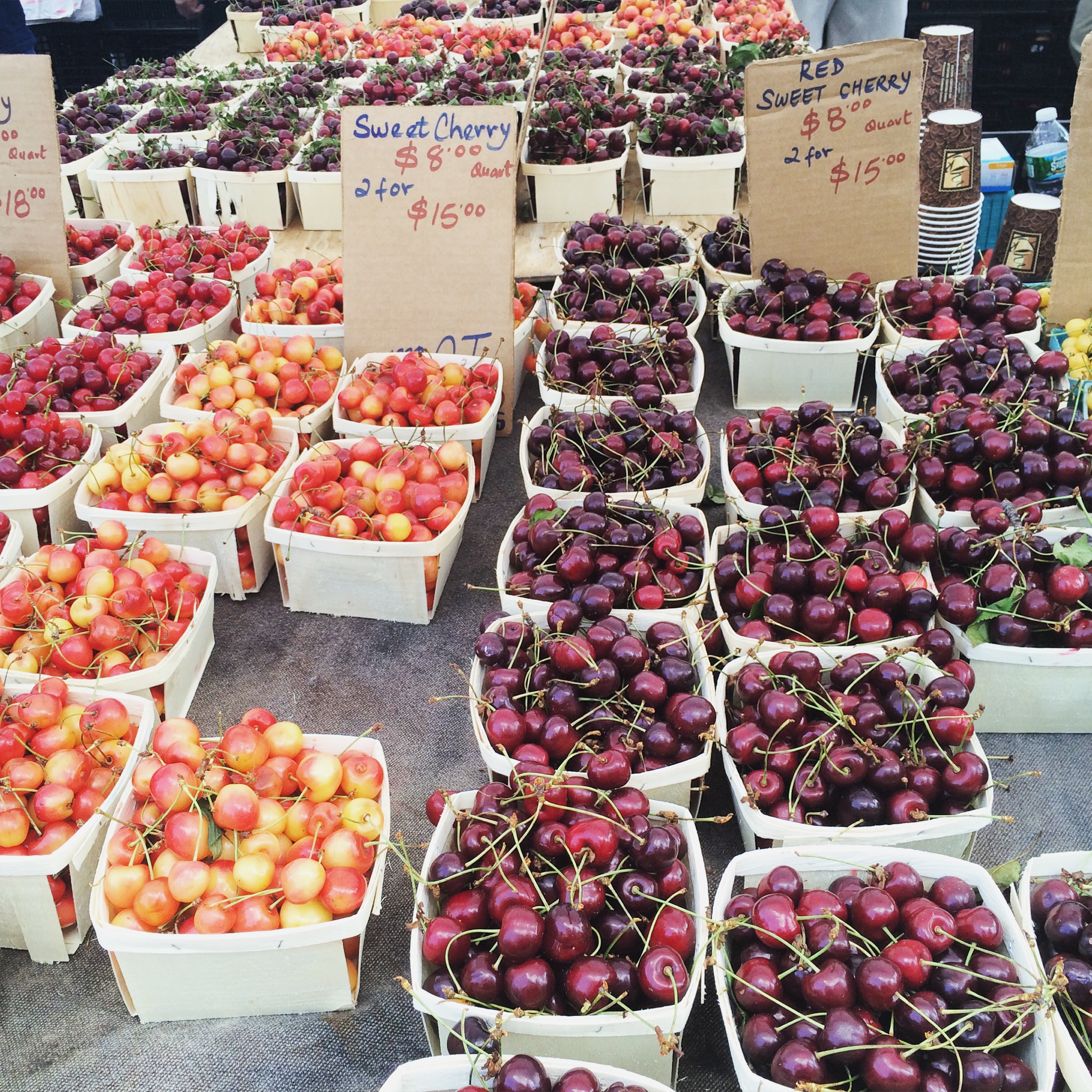 velvet-skinned apriums, sweet little leaf-on cherries.