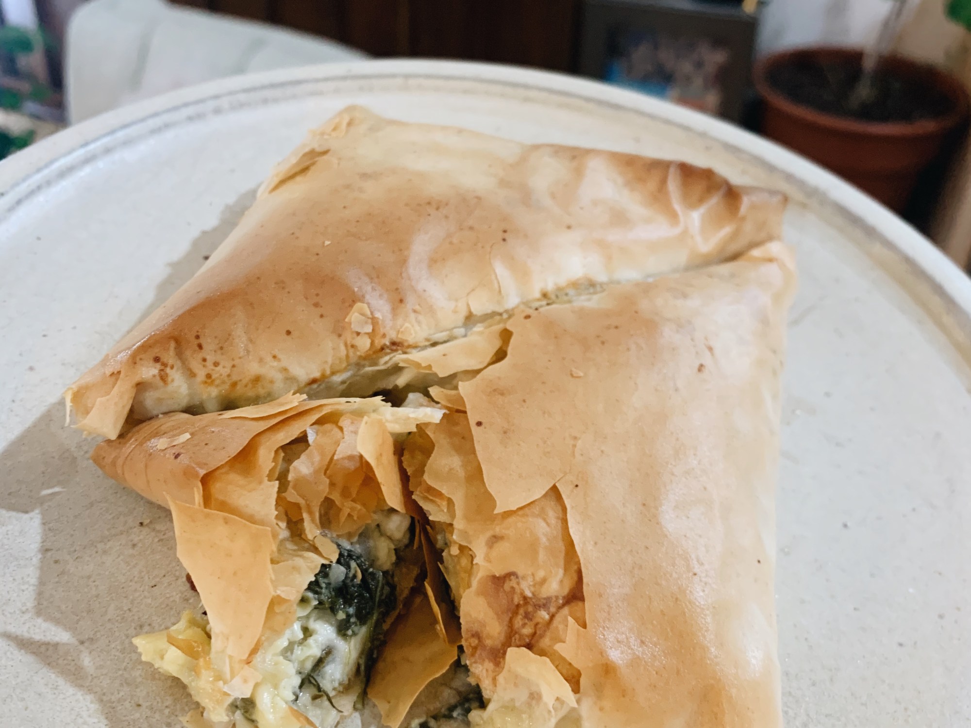 You could think of this as a sort of spanakopita, though when I was growing up they were just “spinach triangles”, which Mum made all the time, never failing to warn me how tricky filo pastry can be. A few years ago I asked for the recipe and took down some rough notes, but only just made a batch for myself. After so many years watching (and subconsciously absorbing the pastry advice — thanks Mum!) it all felt like second nature and tasted just like home.