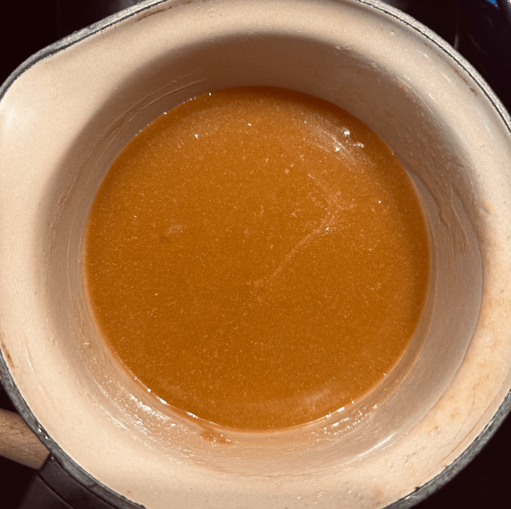 3. In a small saucepan, melt the butter, golden syrup and miso together. (The miso might take some coaxing to dissolve.)